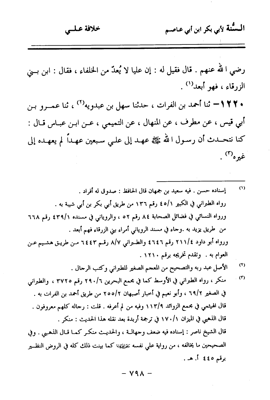 1220 - حَدَّثنا أَحْمَدُ بْنُ الْفُرَاتِ، حَدَّثنا سَهْلُ بْنُ عَبْدَوَيْهِ، حَدَّثنا عَمْرُو بْنُ أَبِي قَيْسٍ، عَنْ مُطَرِّفٍ، عَنِ الْمِنْهَالِ، عَنِ التَّمِيمِيِّ، عَنِ ابْنِ عَبَّاسٍ، قَالَ: كُنَّا نَتَحَدَّثُ أَنَّ رَسُولَ اللهِ صَلى الله عَلَيهِ وسَلمَ عَهِدَ إِلَى عَلِيٍّ سَبْعِينَ عَهْدًا، لَمْ يَعْهَدْهُ إِلَى غَيْرِهِ.