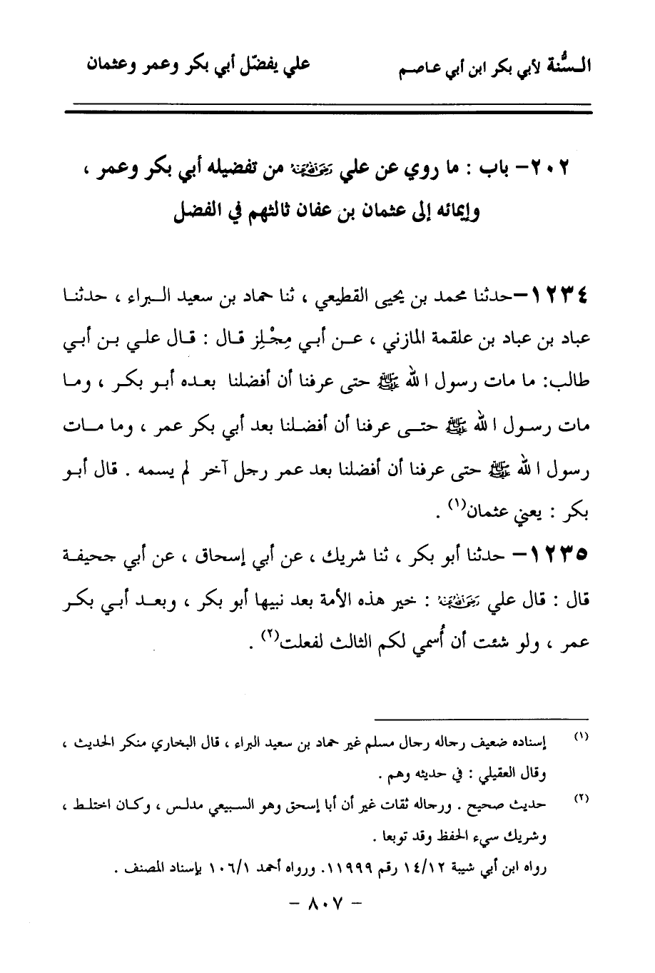 202 - مَا رُوِيَ عَنْ عَلِيٍّ رَضِيَ اللهُ عَنْهُ مِنْ تَفْضِيلِهِ أَبِي بَكْرٍ, وَعُمَرَ، وَإِيمَائِهِ إِلَى عُثْمَانَ بْنِ عَفَّانَ ثَالِثِهِمْ فِي الْفَضْلِ.
