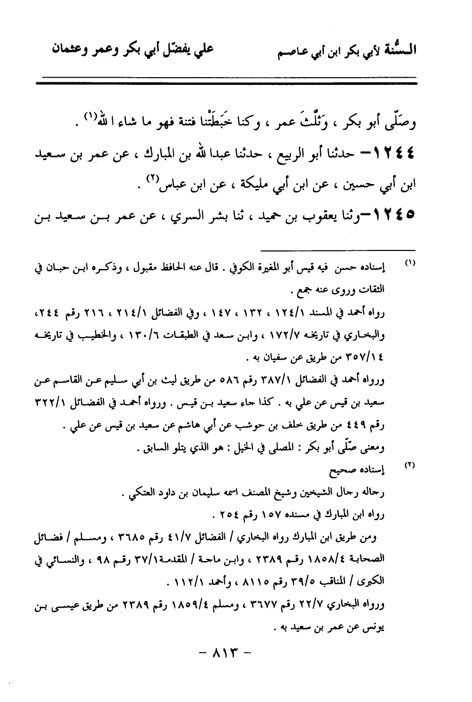 1244 - حَدَّثنا أَبُو الرَّبِيعِ، حَدَّثنا عَبْدُ اللهِ بْنُ الْمُبَارَكِ، عَنْ عُمَرَ بْنِ سَعِيدِ بْنِ أَبِي حُسَيْنٍ، عَنِ ابْنِ أَبِي مُلَيْكَةَ، عَنِ ابْنِ عَبَّاسٍ.