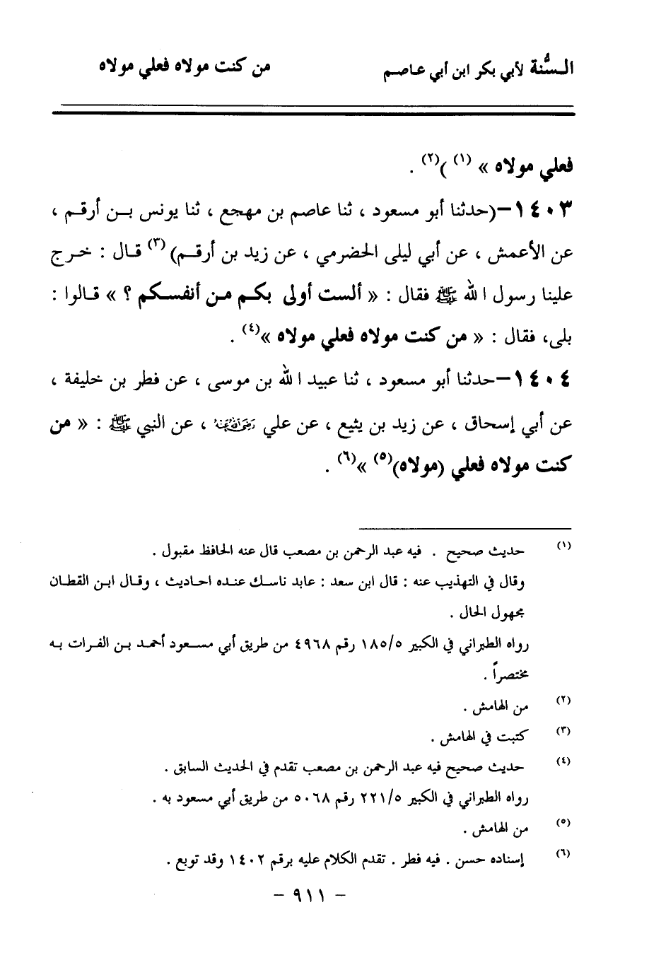 1404 - حَدَّثنا أَبُو مَسْعُودٍ، حَدَّثنا عُبَيْدُ اللهِ بْنُ مُوسَى، عَنْ فِطْرِ بْنِ خَلِيفَةَ، عَنْ أَبِي إِسْحَاقَ، عَنْ زَيْدِ بْنِ يُثَيْعٍ، عَنْ عَلِيٍّ رَضِيَ اللهُ عَنْهُ, عَنِ النَّبِيِّ صَلى الله عَلَيهِ وسَلمَ: مَنْ كُنْتُ مَوْلاَهُ, فَعَلِيٌّ مَوْلاَهُ.