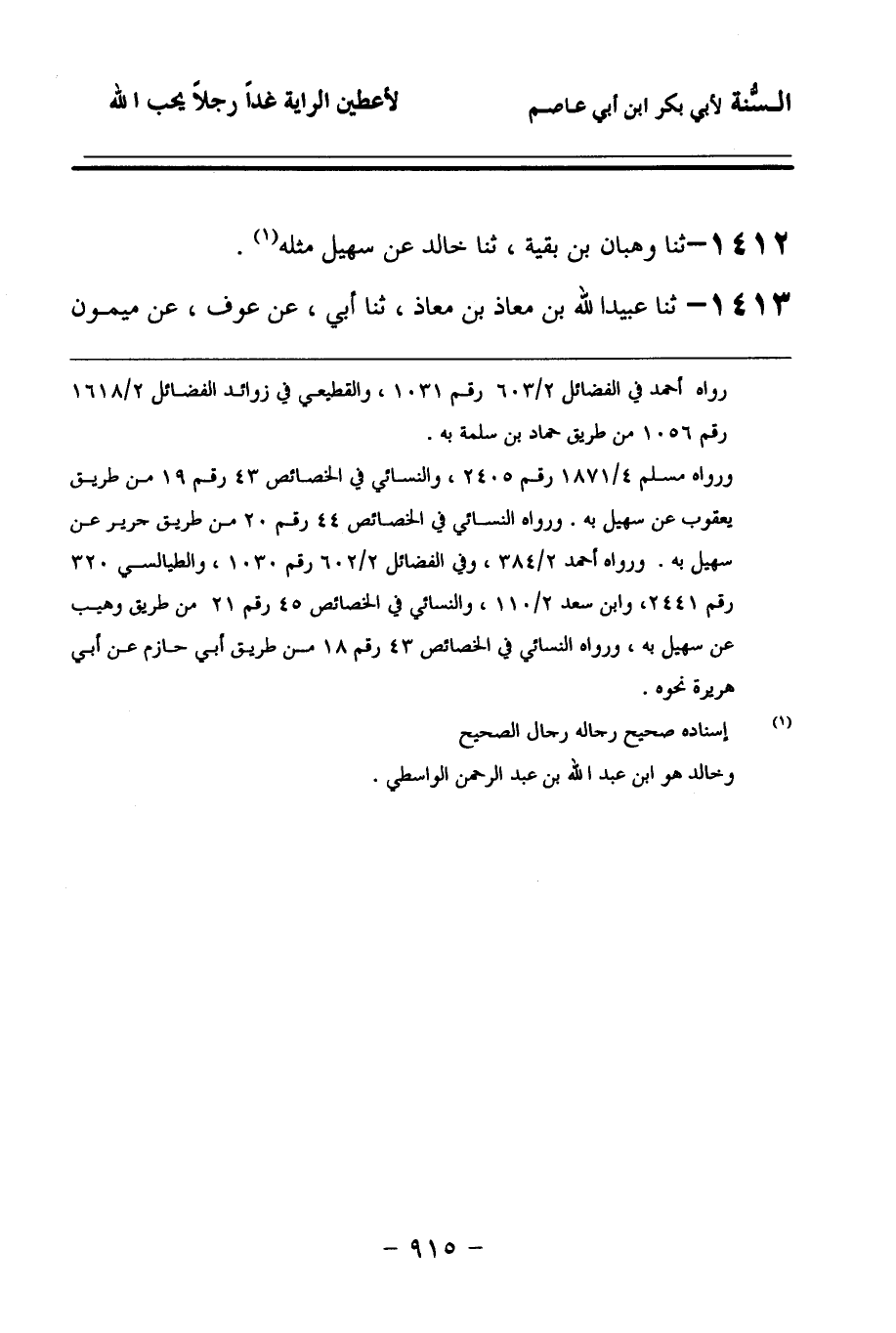 1412 - حَدَّثنا وَهْبَانُ بْنُ بَقِيَّةَ، حَدَّثنا خَالِدٌ، عَنْ سُهَيْلٍ، مِثْلَهُ.
