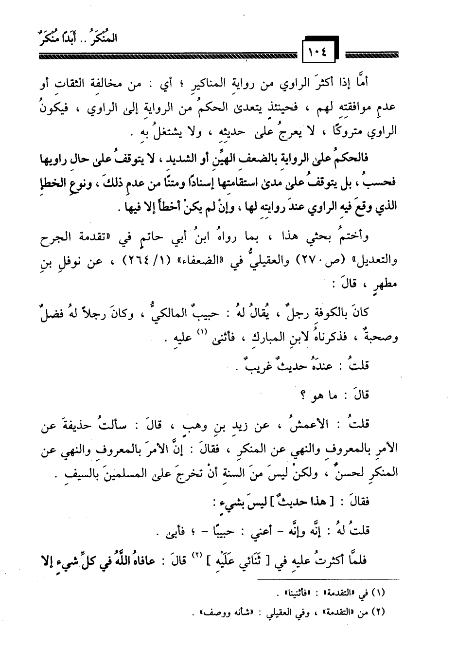 وأختم بحثي هذا، بما رواه ابن أبي حاتم في " تقدمة الجرح والتعديل " (ص 270) والعقيلي في " الضعفاء " (1/264) ، عن نوفل بن مطهر، قال: