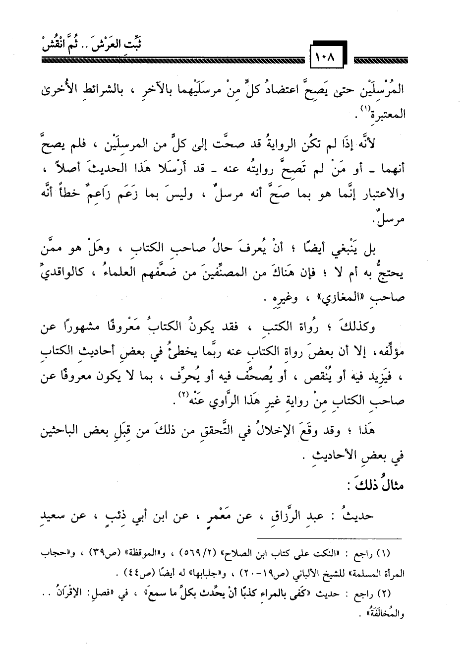 (¬1) راجع: " النكت على كتاب ابن الصلاح " (2/569) ، و " الموقظة " (ص 39) ، و " حجاب المرأة المسلمة " للشيخ الألباني (ص 19 - 20) ،