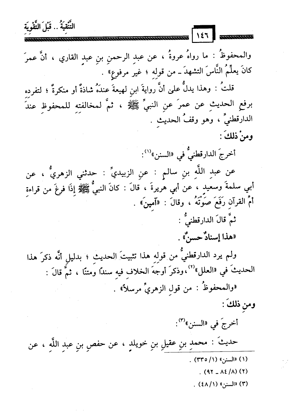 قلت: وهذا يدل على أن رواية ابن ليهعة عند شاذة أو منكرة؛ لتفرده برفع الحديث عن عمر عن النبي - صلى الله عليه وسلم -، ثم لمخالفته للمحفوظ عند الدارقطني، وهو وقف الحديث.