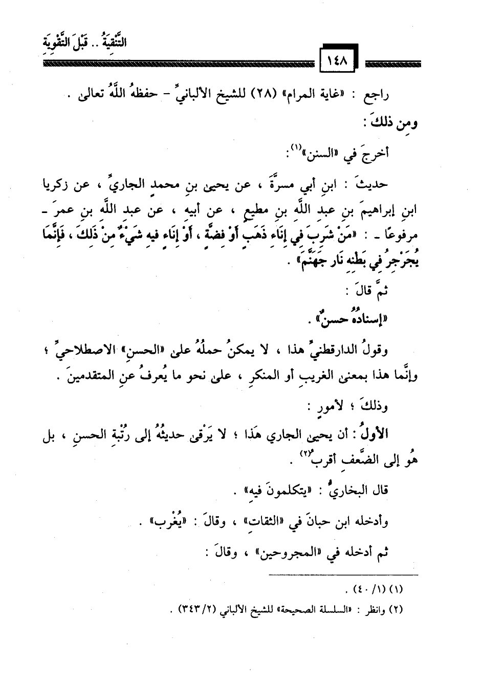 الأول: أن يحيى الجاري هذا؛ لا يرقى حديثه إلى رتبة الحسن، بل هو إلى الضعيف أقرب (¬2) .