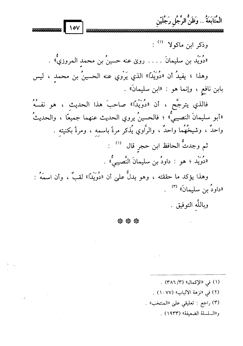 وهذا يؤكد ما حققته، وهو يدل على أن " دويداً " لقب، وأن اسمه: " داود بن سليمان " (¬3) .