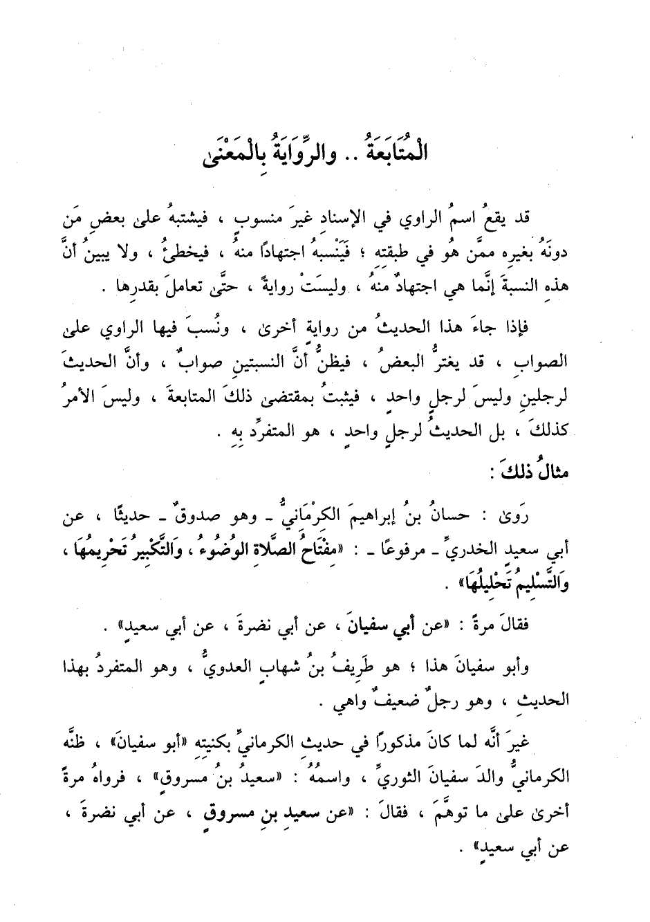 فإذا جاء هذا الحديث من رواية أخرى، ونُسب فيها الراوي على الصواب، قد يغتر البعض، فيظن أن النسبتين صواب، وأن الحديث لرجلين وليس لرجل واحد، فيثبت بمقتضى ذلك المتابعة، وليس الأمر كذلك، بل الحديث لرجل واحد، هو المتفرد به.
