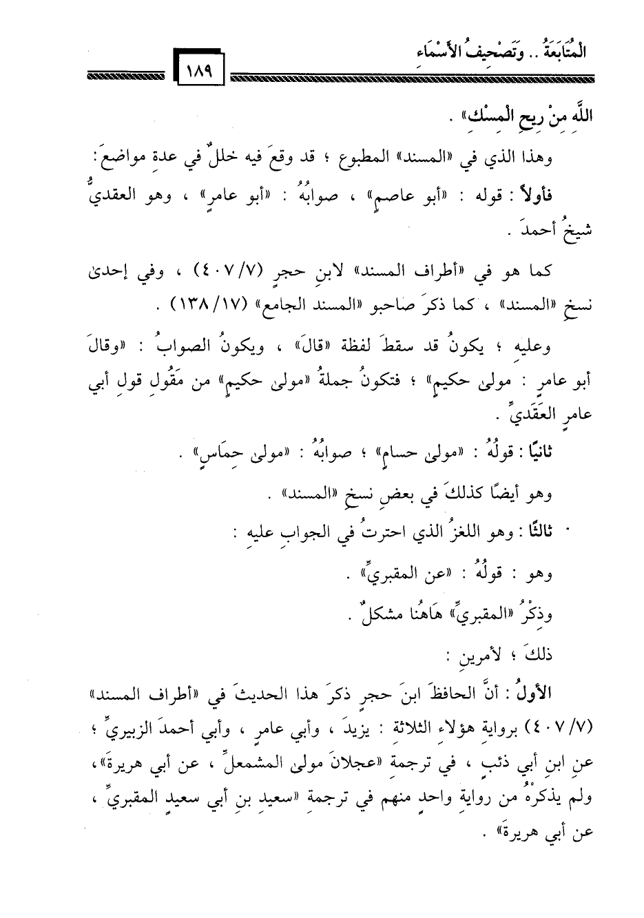 وهذا الذي في "المسند" المطبوع؛ قد وقع فيه خلل في عدة مواضع: