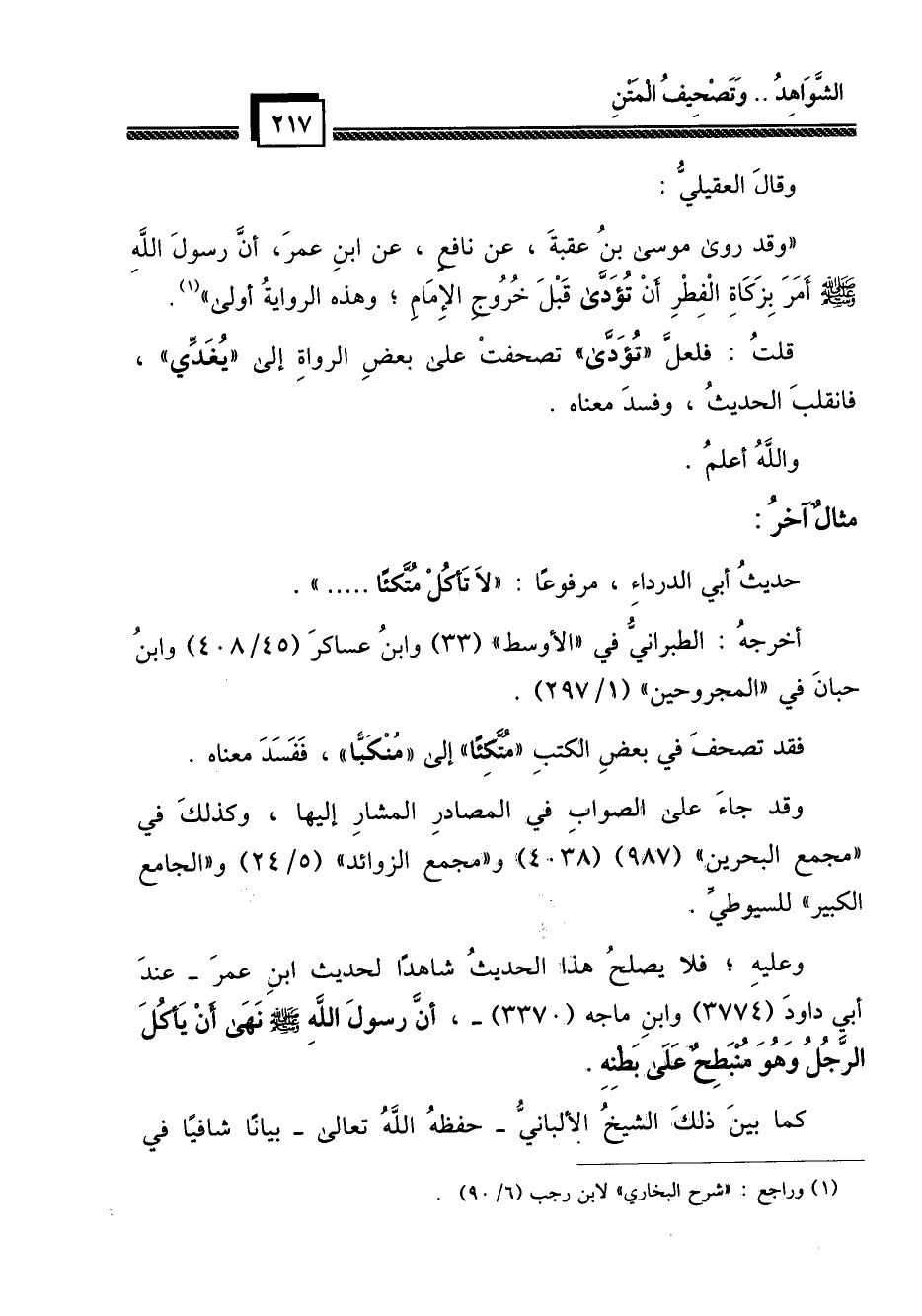 (¬1) وراجع: " شرح البخاري " لابن رجب (6/90) .