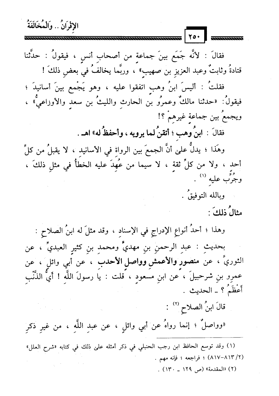 (¬1) وقد توسع الحافظ ابن رجب الحنبلي في ذكر أمثلة ذلك في كتابه " شرح العلل " (2/813-817) ؛ فراجعه؛ فإنه مهم.