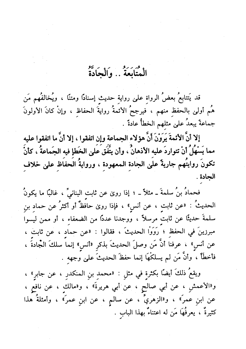فحماد بن سلمة ـ مثلاً ـ؛ إذا روى عن ثابت البناني، غالباً ما يكون الحديث: "عن ثابت، عن أنس"، فإذا روى حافظ أو أكثر عن حماد بن سلمة حديثاً عن ثابت مرسلاً، ووجدنا عدداً من الضعفاء، أو ممن ليسوا مبرزين في الحفظ؛ رووا الحديث، فقالوا: "عن حماد، عن ثابت، عن أنس"، عرفنا أن من وصل الحديث بذكر أنس إنما سلك الجادة، فأخطأ، وأن من لم يسلكها إنما حفظ الحديث على وجهه.
