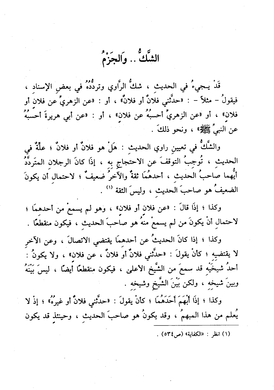 والشك في تعيين راوي الحديث: هل هو فلان أو فلان، علة في الحديث، توجب التوقف عن الاحتجاج به، إذا كان الرجلان المتردَّدُ أيهما صاحب الحديث، أحدهما ثقة والآخر ضعيف؛ لاحتمال أن يكون الضعيف هو صاحب الحديث، وليس الثقة (¬1) .
