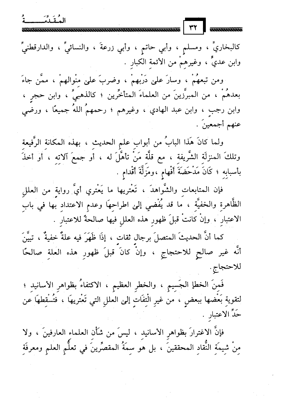 ولما كان هذا الباب من أبواب علم الحديث، بهذه المكانة الرفيعة وتلك المنزلة الشريفة، مع قلة من تأهل له، أو جمع آلاته، أو أخذ بأسبابه؛ كان مَدْحَضَةَ أفهام، ومزلة أقدام.