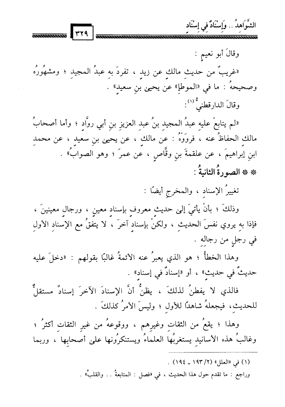 " غريب من حديث مالك عن زيد، تفرد به عبد المجيد؛ ومشهوره وصحيحه: ما في " الموطأ " عن يحيى بن سعيد.