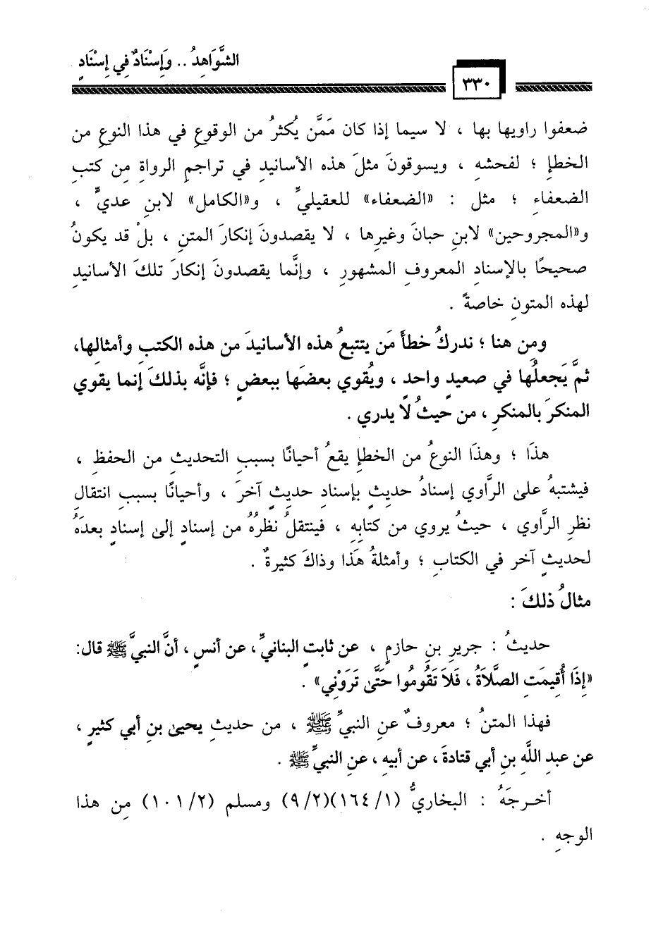 هذا؛ وهذا النوع من الخطأ يقع أحياناً بسبب التحديث من الحفظ، فيشتبه على الراوي إسناد حديث بإسناد حديث آخر، وأحيانا بسبب انتقال نظر الراوي، حيث يروي من كتابه، فينتقل نظره من إسناد إلى إسناد بعده لحديث آخر في الكتاب؛ وأمثلة هذا وذاك كثيرة.