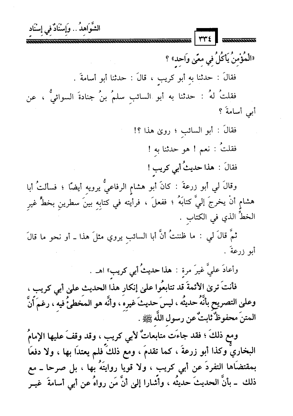 فأنت ترى الأئمة قد تتابعوا على إنكار هذا الحديث على أبي كريب، وعلى التصريح بأنه حديثه، ليس حديث غيره، وأنه هو المخطئ فيه، رغم أنه المتن محفوظ ثابت عن رسول الله - صلى الله عليه وسلم -.