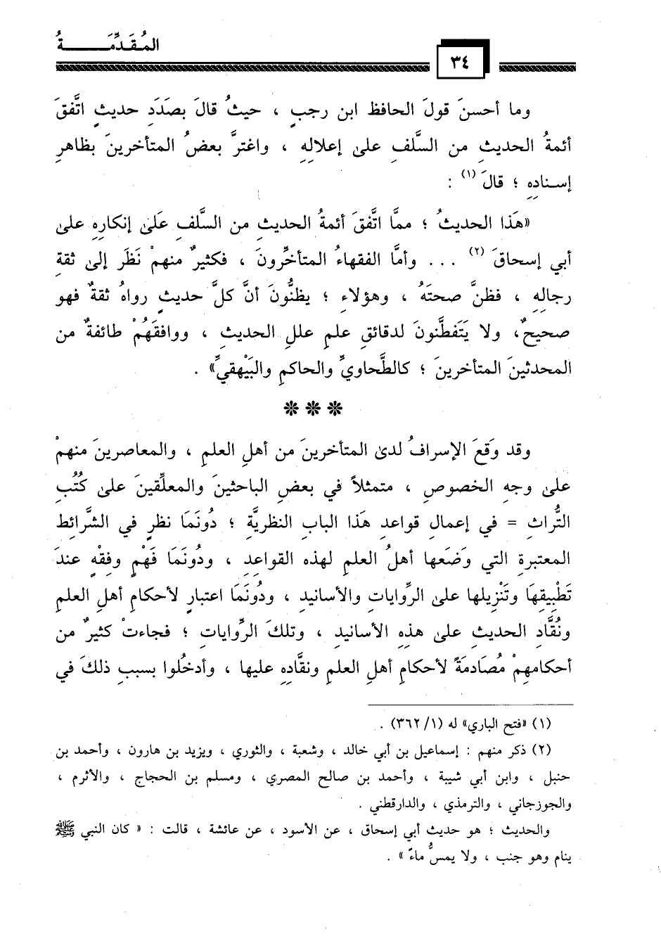 وما أحسن قول الحافظ ابن رجب، حيث قال بصدد حديث اتفق أئمة الحديث من السلف على إعلاله، واغتر بعض المتأخرين بظاهر إسناده؛ قال (¬1) :