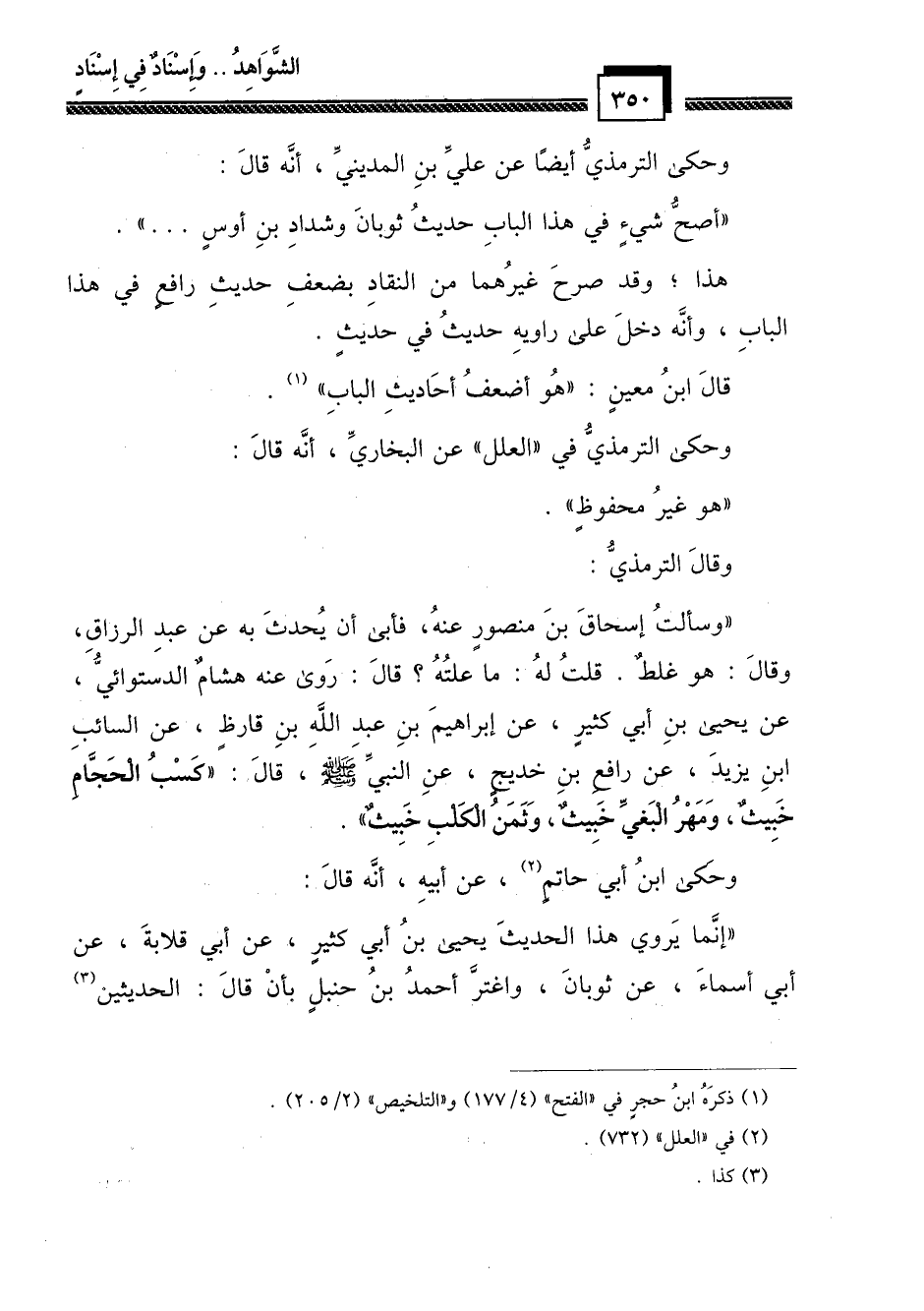 هذا؛ وقد صرح غيرهما من النقاد بضعف حديث رافع في هذا الباب، وأنه دخل على راويه حديث في حديث.