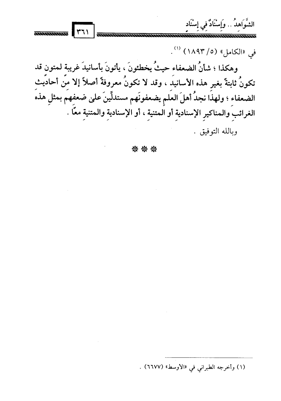 وهكذا؛ شأن الضعفاء حيث يخطئون، يأتون بأسانيد غريبة لمتون قد تكون ثابتة بغير هذه الأسانيد، وقد لا تكون معروفة أصلاً إلا من أحاديث الضعفاء؛ ولهذا نجد أهل العلم يضعفونهم مستدلين على ضعفهم بمثل هذه الغرائب والمناكير الإسنادية أو المتنية، أو