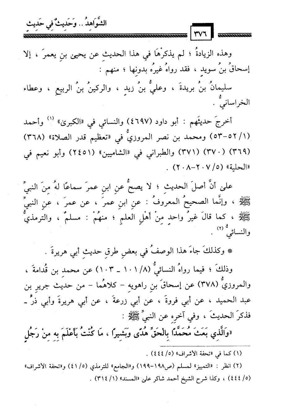 (¬2) انظر " التمييز " لمسلم (ص 198-199) و " الجامع " للترمذي (5/41) و " تحفة الأشراف " (5/444) ، وكذا شرح الشيخ أحمد شاكر على
