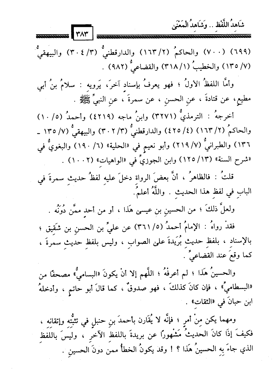 (699) (700) والحاكم (2/163) والدارقطني (3/304) والبيهقي (7/135) والخطيب (1/318) والقضاعي (982) .
