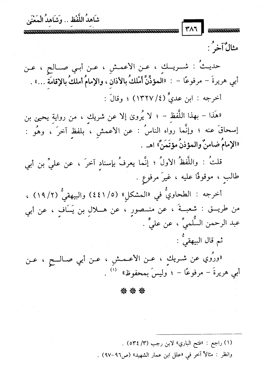 وانظر مثالاً آخر في " علل ابن عمار الشهيد " (ص 96-97) .