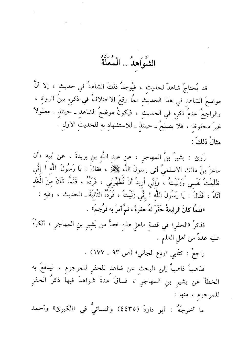 فذهب ذاهب إلى البحث عن شاهد للحفر للمرجوم، ليدفع به الخطأ عن بشير بن المهاجر، فساق عدة شواهد فيها ذكر الحفر للمرجوم، منها: