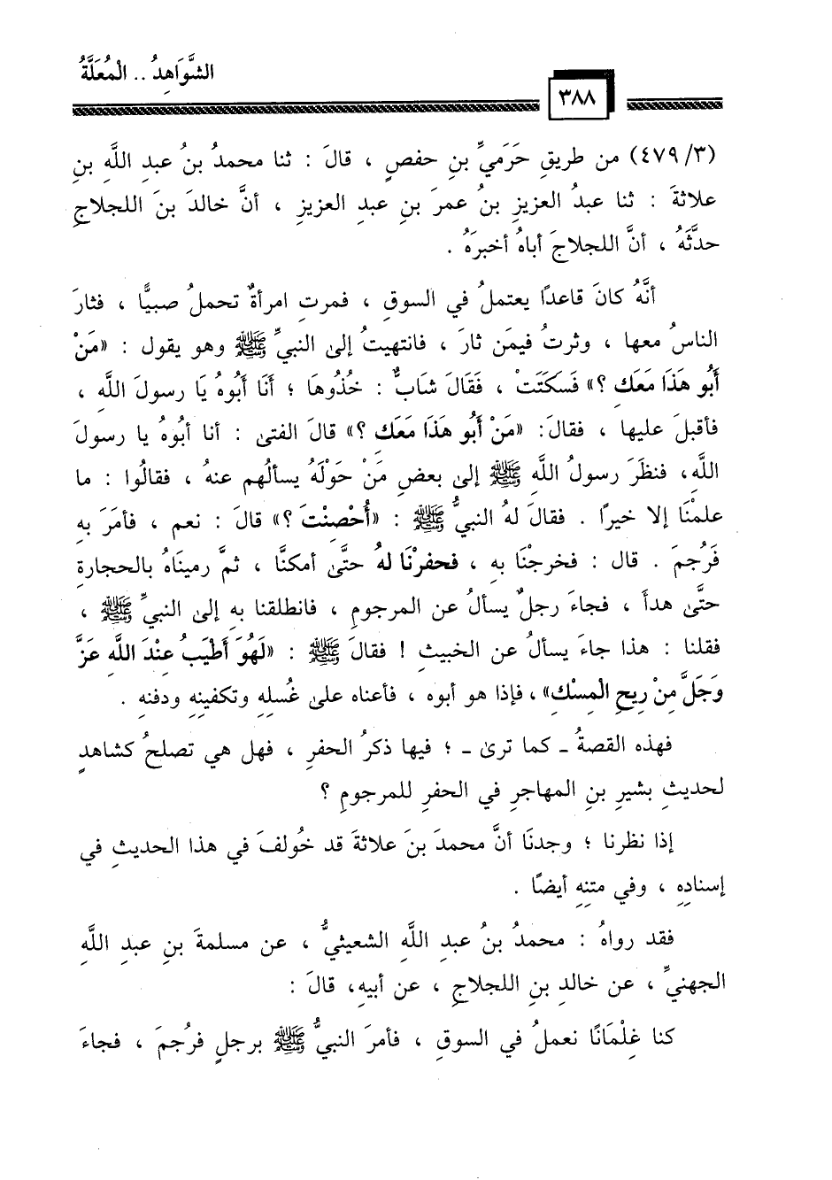فقد رواه: محمد بن عبد الله الشعيثي، عن مسلمة بن عبد الله الجهني، عن خالد بن اللجلاج، عن أبيه، قال: كنا غلماناً نعمل في السوق، فأمر النبي - صلى الله عليه وسلم - برجل فرجم، فجاء