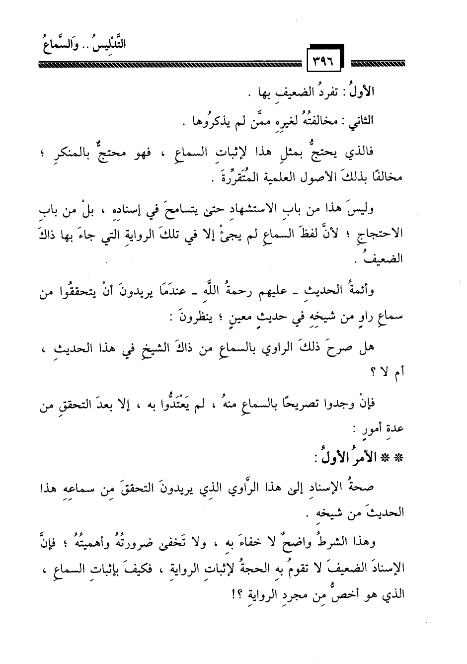 وهذا شرط واضح لا خفاء به، ولا تخفى ضرورته وأهميته؛ فإن الإسناد الضعيف لا تقوم به الحجة لإثبات الرواية، فكيف بإثبات السماع، الذي هو أخص من مجرد الرواية؟!