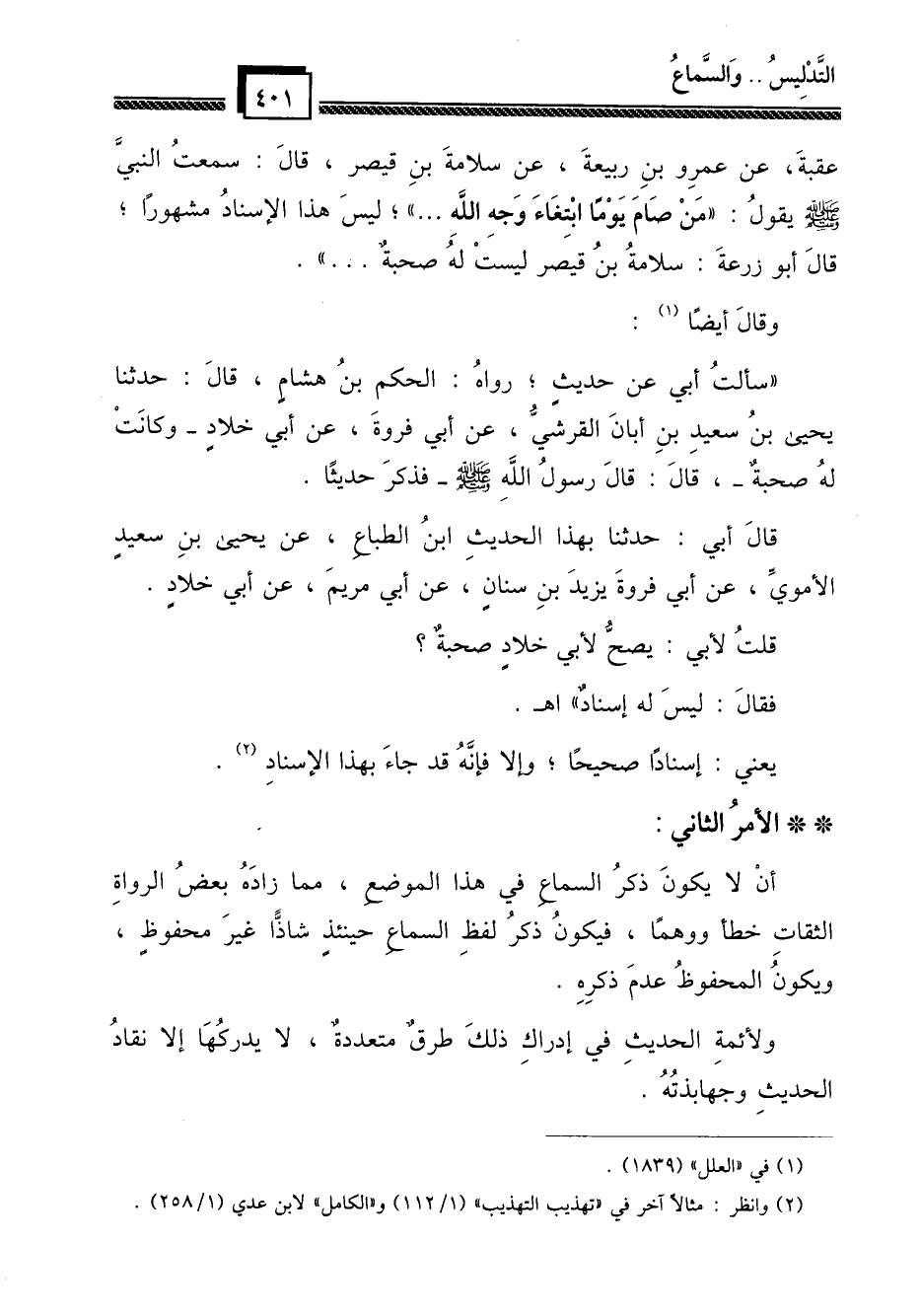 (¬1) وانظر: مثالاً آخر في " تهذيب التهذيب " (1/112) و " الكامل " لابن (1/258) .