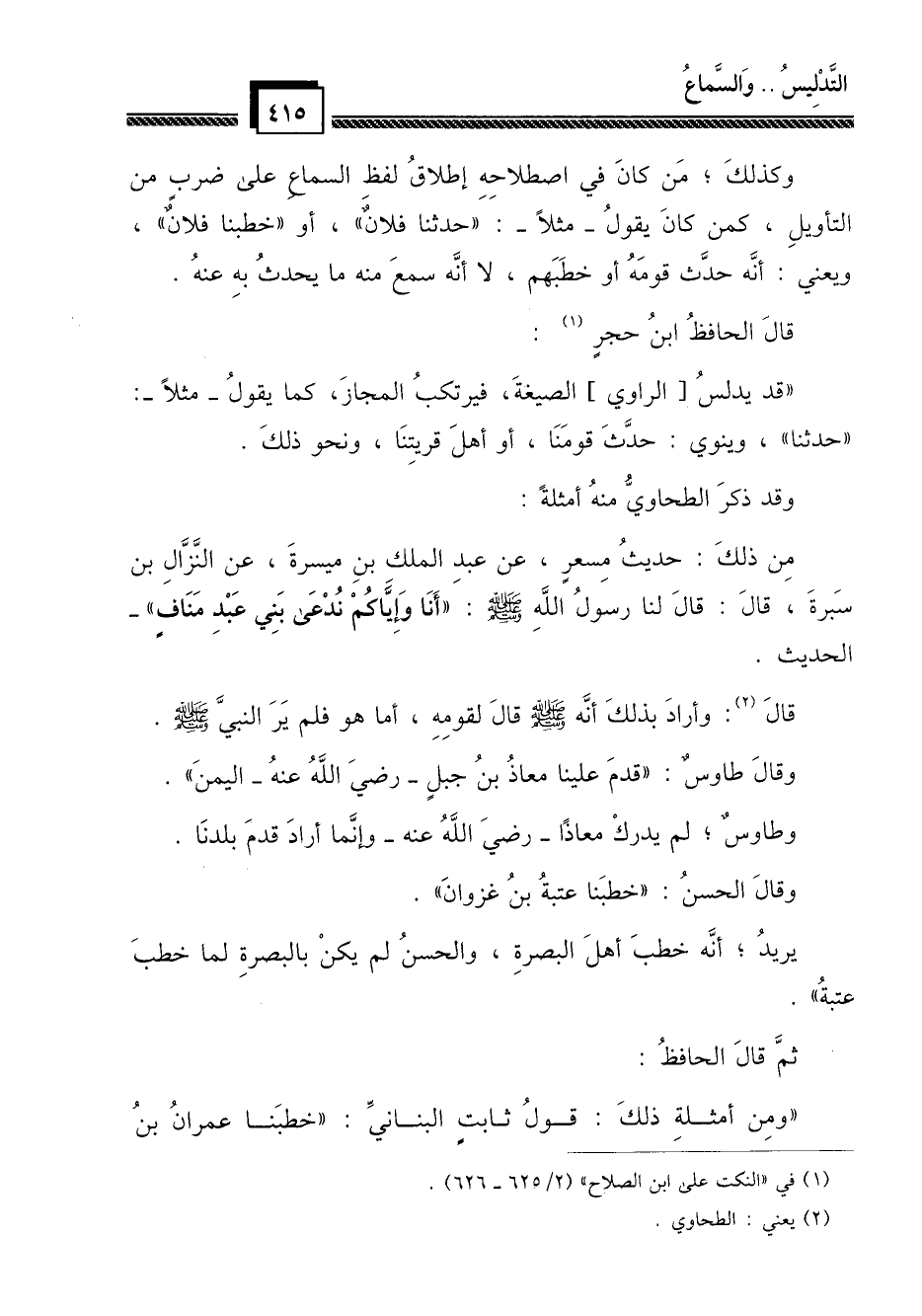 " ومن أمثلة ذلك: قول ثابت البناني: " خطبنا عمران بن