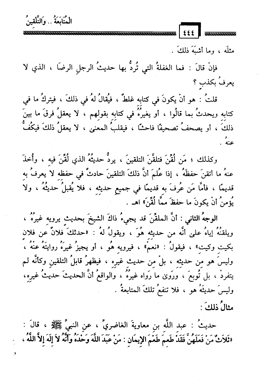 حديث عبد الله بن معاوية الغاضري، عن النبي - صلى الله عليه وسلم -، قال: " ثلاث من فعلهن فقد طَعِمَ طَعْمَ الإيمان: من عبد الله وحده وأنه لا إله إلا الله،