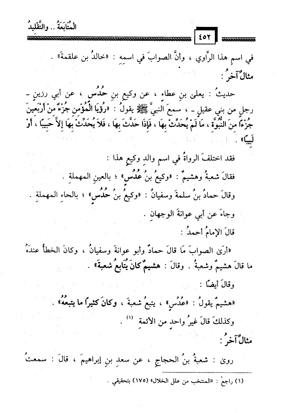 (¬1) راجع: " المنتخب من علل الخلال " (175) بتحقيقي.