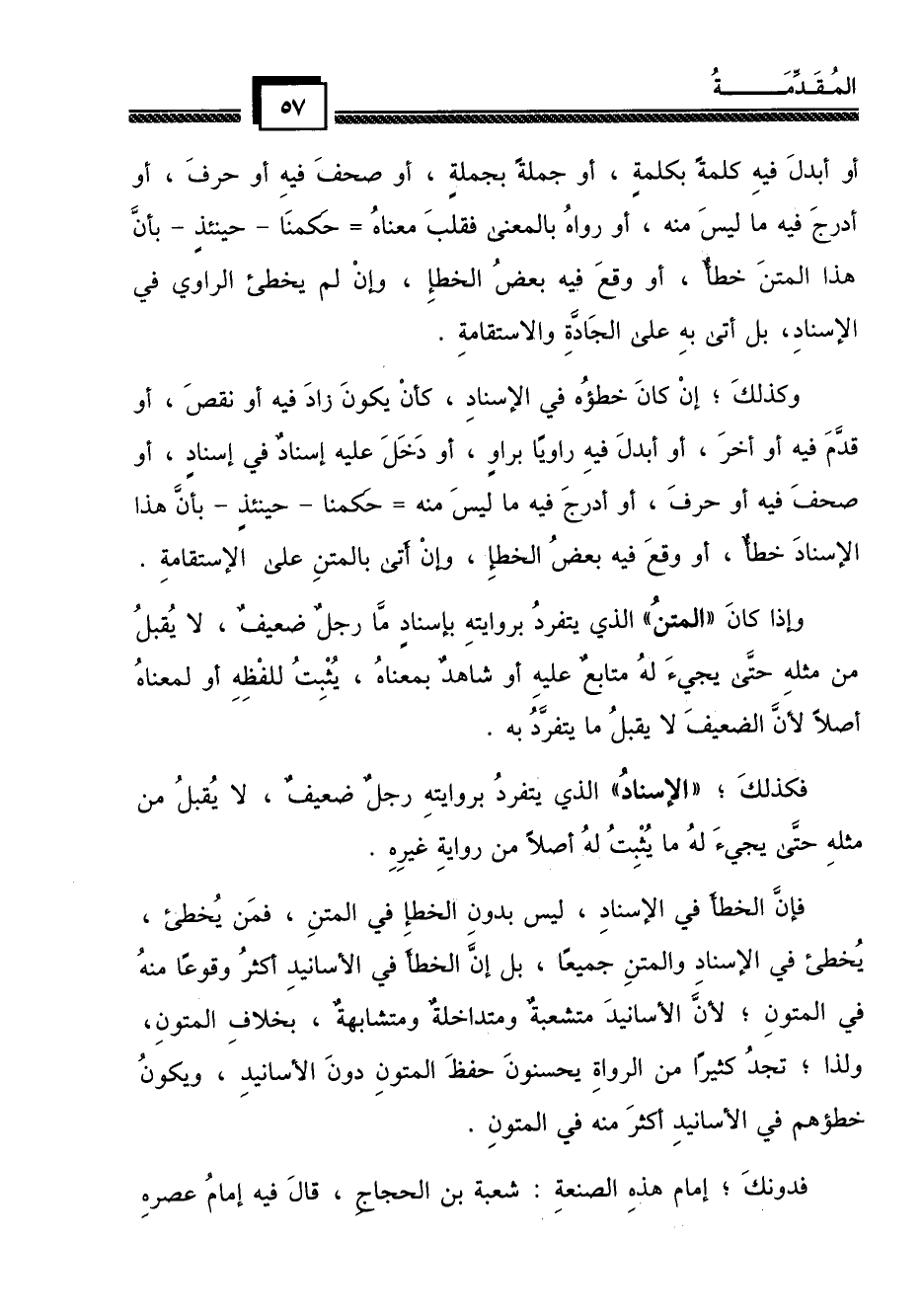 أو أبدل فيه كلمة بكلمة، أو جملة بجملة، أو صحف فيه أو حرف، أو أدرج فيه ما ليس منه، أو رواه بالمعنى فقلب معناه =حَكمنا ـ حينئذٍ ـ بأن هذا المتن خطأ، أو وقع فيه بعض الخطأ، وإن لم يخطئ الراوي في
