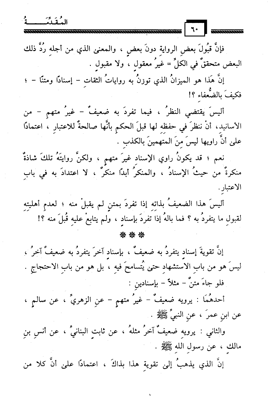 أليس يقتضي النظر، فيما تفرد به ضعيف ـ غير متهم ـ من الأسانيد، أن ننظر في حفظه لها قبل الحكم بأنها صالحة للاعتبار، اعتماداً على أن راويها ليس من المتهمين بالكذب.