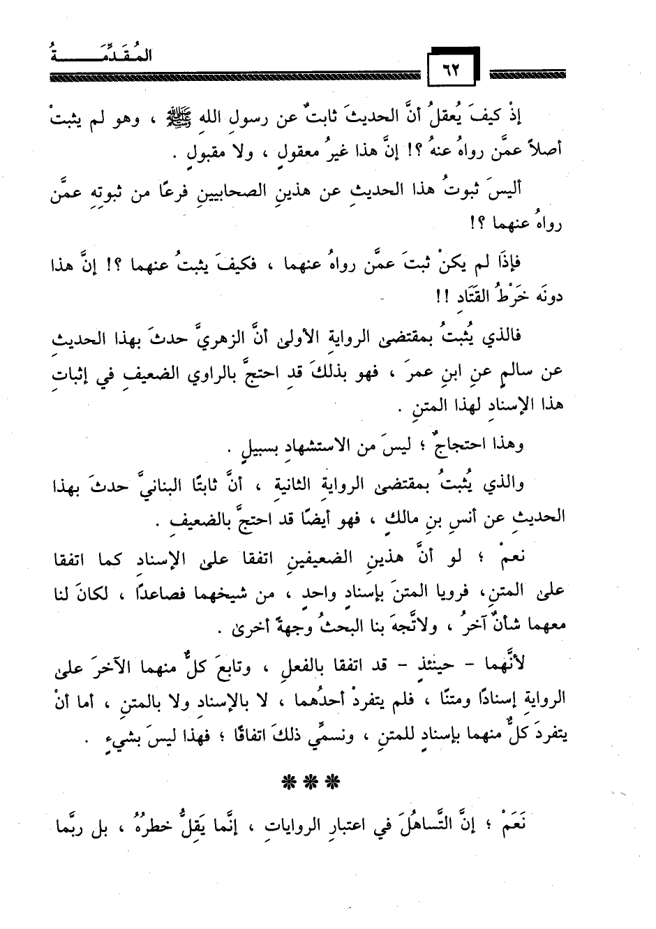 إذ كيف يعقل أن الحديث ثابت عن رسول الله - صلى الله عليه وسلم -، وهو لم يثبت أصلاً عمن رواه عنه؟! إن هذا غير معقول، ولا مقبول.