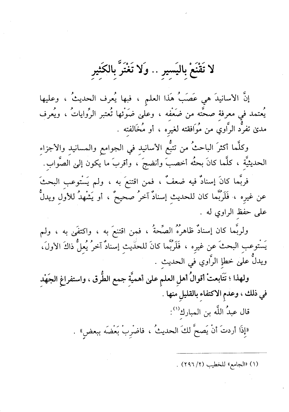 وكلما أكثر الباحث من تتبع الأسانيد في الجوامع والمسانيد والأجزاء الحديثية، كلما كان بحثه أخصب وأنضج، وأقرب ما يكون إلى الصواب.