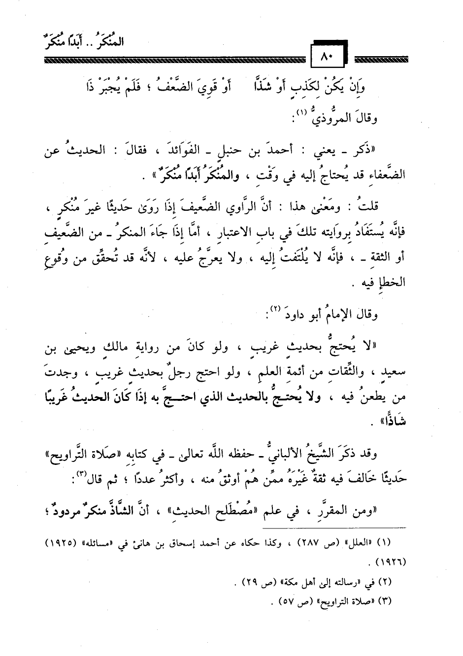 "ومن المقرر، في علم "مصطلح الحديث"، أن الشاذ منكر مردود؛