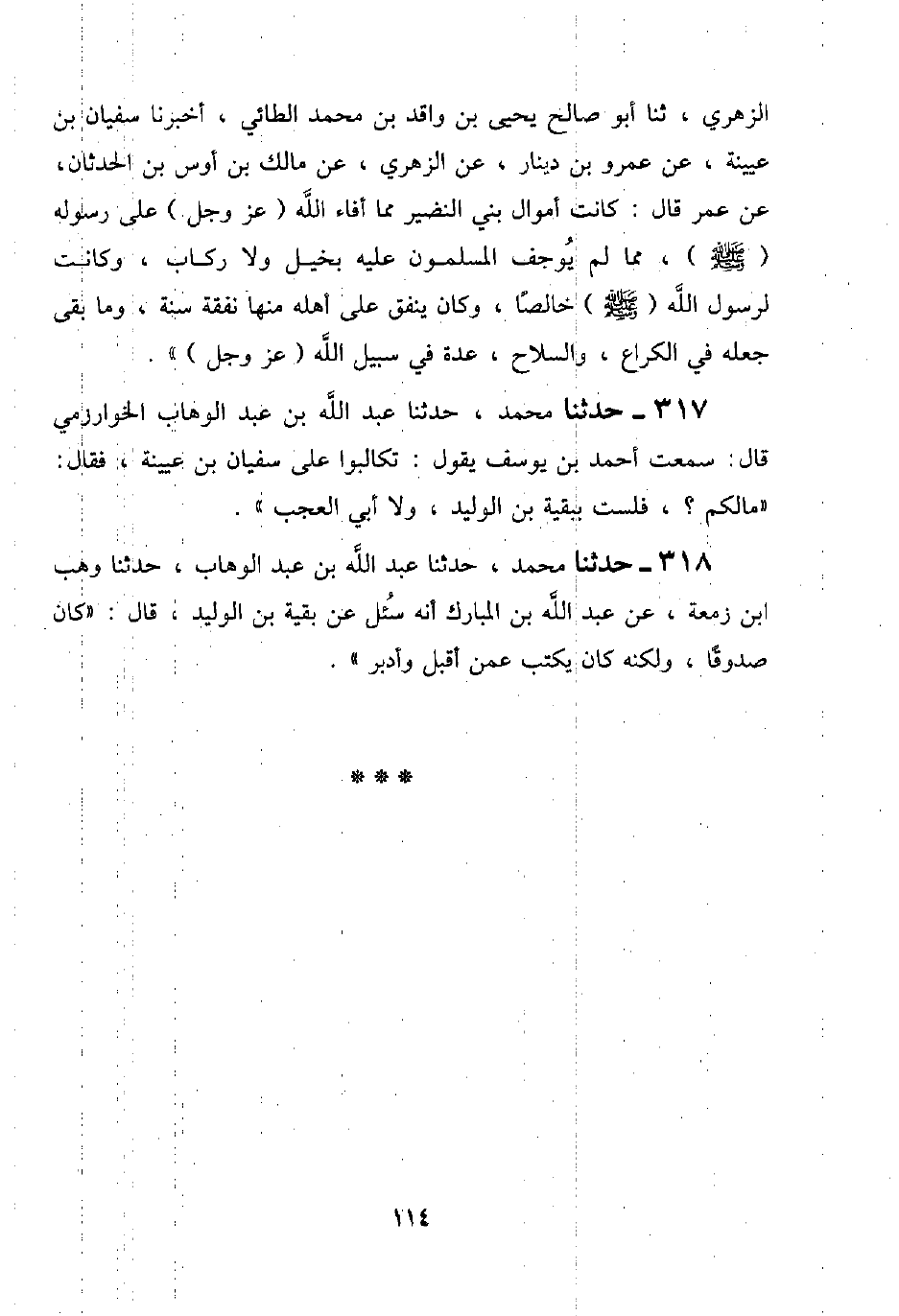 298 - حَدَّثَنَا مُحَمَّدٌ، حَدَّثَنَا عَبْدُ اللَّهِ بْنُ عَبْدِ الْوَهَّابِ الْخُوَارِزْمِيُّ قَالَ: سَمِعْتُ أَحْمَدَ بْنَ يُوسُفَ يَقُولُ: §تَكَالَبُوا عَلَى سُفْيَانَ بْنِ عُيَيْنَةَ، فَقَالَ: «مَا لَكُمْ؟ فَلَسْتُ بِبَقِيَّةَ بْنِ الْوَلِيدِ، وَلَا أَبِي الْعَجَبِ»