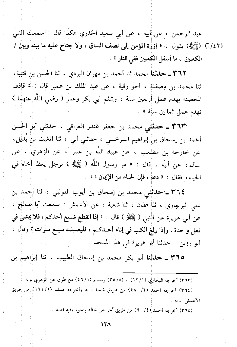 341 - حَدَّثَنِي مُحَمَّدُ بْنُ جَعْفَرٍ غُنْدَرٌ الْعِرَاقِيُّ، حَدَّثَنِي أَبُو الْحَسَنِ أَحْمَدُ بْنُ إِسْحَاقَ بْنِ إِبْرَاهِيمَ السَّرَخْسِيُّ، حَدَّثَنِي أَبِي، ثنا الْمُغِيثُ بْنُ بُدَيْلٍ، عَنْ خَارِجَةَ بْنِ مُصْعَبٍ، عَنْ عُبَيْدِ اللَّهِ بْنِ عُمَرَ، عَنِ الزُّهْرِيِّ، عَنْ سَالِمٍ، عَنْ أَبِيهِ قَالَ: مَرَّ رَسُولُ اللَّهِ صَلَّى اللَّهُ عَلَيْهِ وَسَلَّمَ بِرَجُلٍ يَعِظُ أَخَاهُ فِي الْحَيَاءِ، فَقَالَ: «دَعْهُ، فَإِنَّ §الْحَيَاءَ مِنَ الْإِيمَانِ»