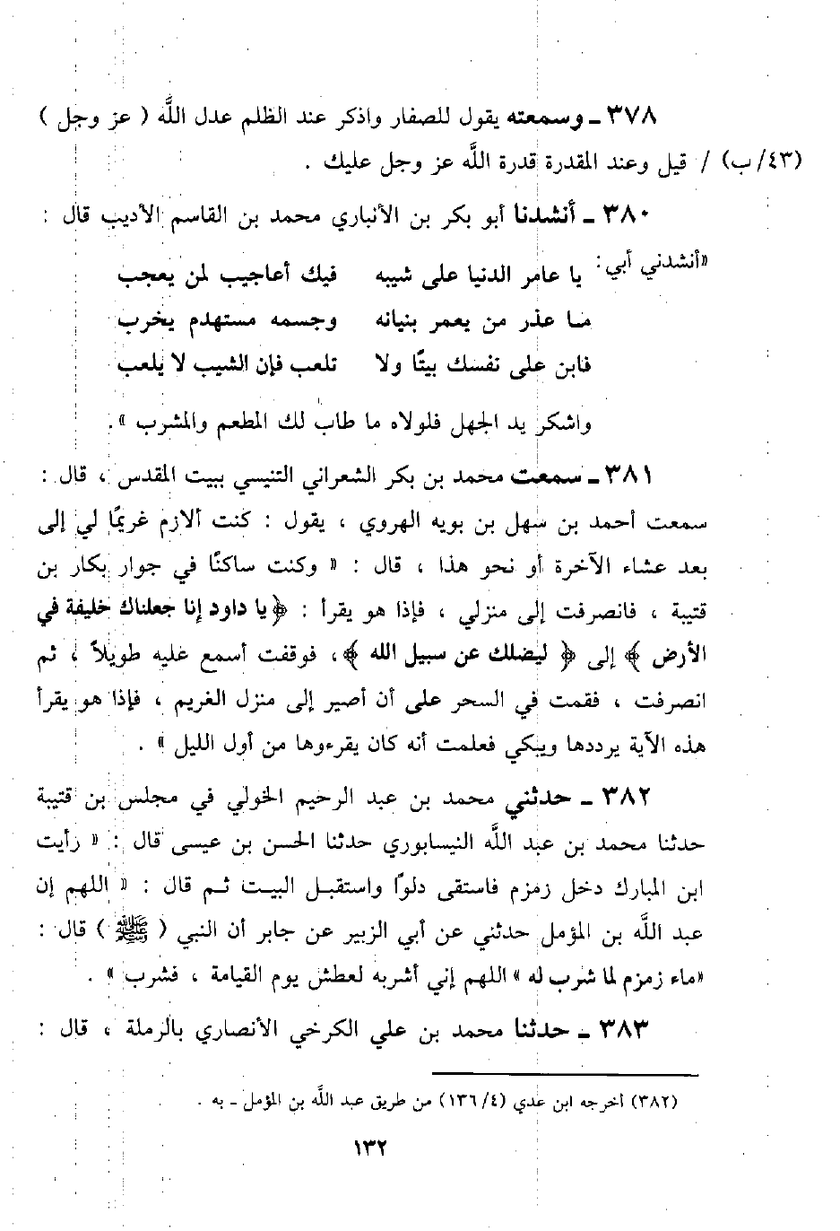 362 - حَدَّثَنَا مُحَمَّدُ بْنُ عَلِيٍّ الْكَرْخِيُّ الْأَنْصَارِيُّ، بِالرَّمْلَةِ قَالَ: -[133]- أَنْشَدَنَا أَبُو الْقَاسِمِ الْعَبَّاسُ بْنُ الْفَضْلِ بْنِ شَاذَانَ: