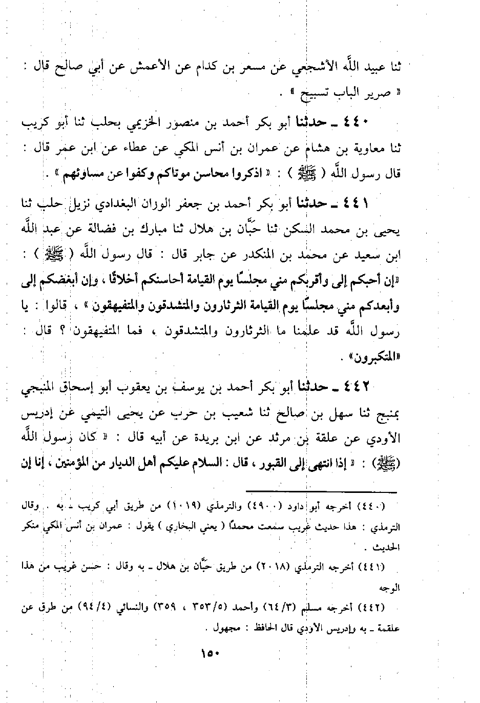 422 - حَدَّثَنَا أَحْمَدُ، ثنا أَحْمَدُ بْنُ حَازِمِ بْنِ أَبِي عَرْزَةَ، ثنا حَسَنُ بْنُ قُتَيْبَةَ قَالَ: قَالَ سُفْيَانُ الثَّوْرِيُّ لِسُفْيَانَ بْنِ عُيَيْنَةَ: «§مَا لَكَ لَا تُحَدِّثُ؟» قَالَ: «أَمَا وَأَنْتَ حَيٌّ فَلَا»