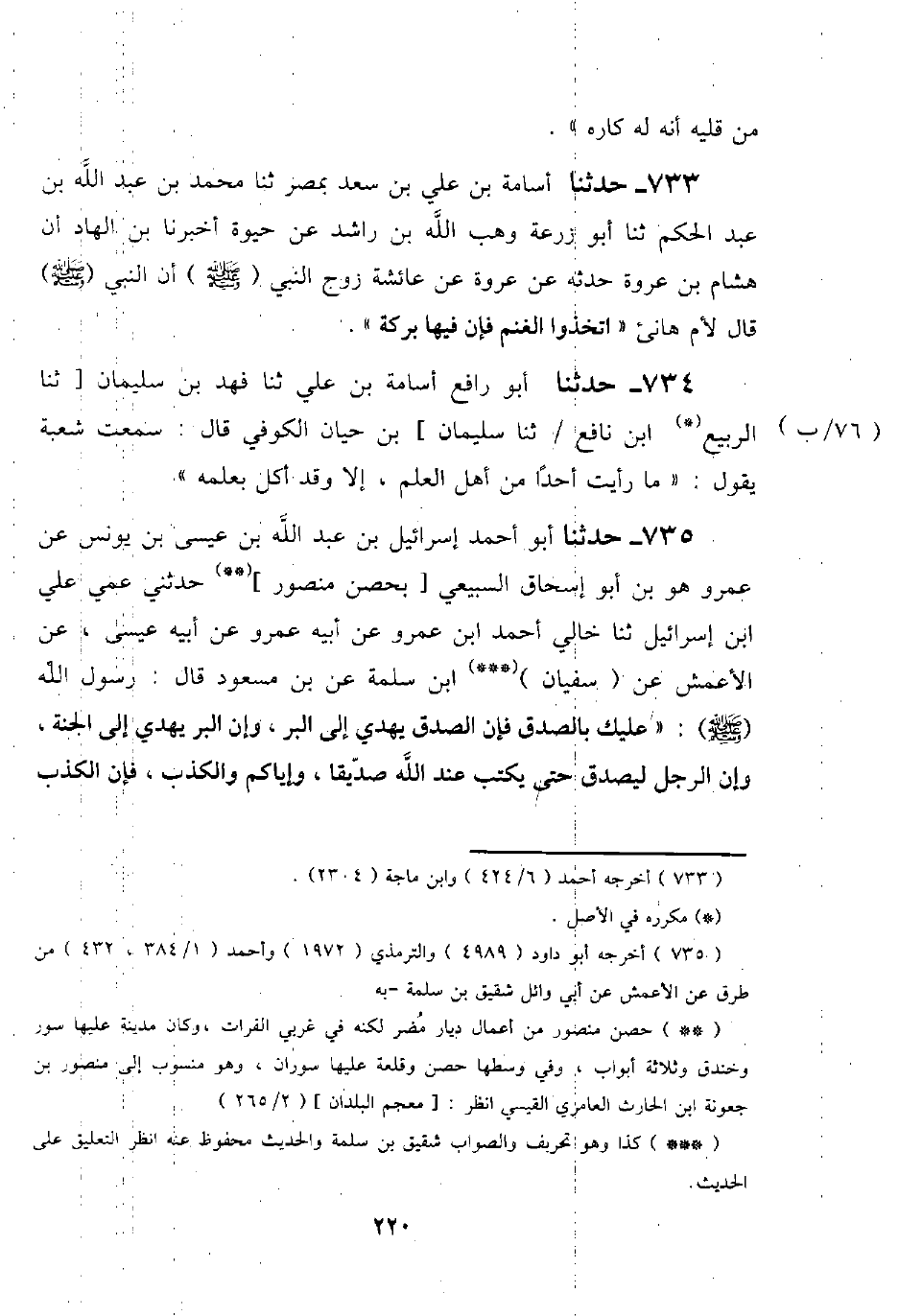 706 - حَدَّثَنَا إِسْرَائِيلُ، حَدَّثَنِي عَمِّي ثنا خَالِي أَحْمَدُ بْنُ عَمْرٍو عَنْ أَبِيهِ عِيسَى عَنْ أَبِي إِسْحَاقَ قَالَ: «حَجَجْتُ مَعَ أَبِي هُرَيْرَةَ وَرَافِعِ بْنِ خَدِيجٍ وَنَزَلُوا عَلَى عَبْدِ اللَّهِ بْنِ الزُّبَيْرِ، §وَذَبَحَ لَهُمْ شَاةً، وَكَانَ يُبَخَّلُ»