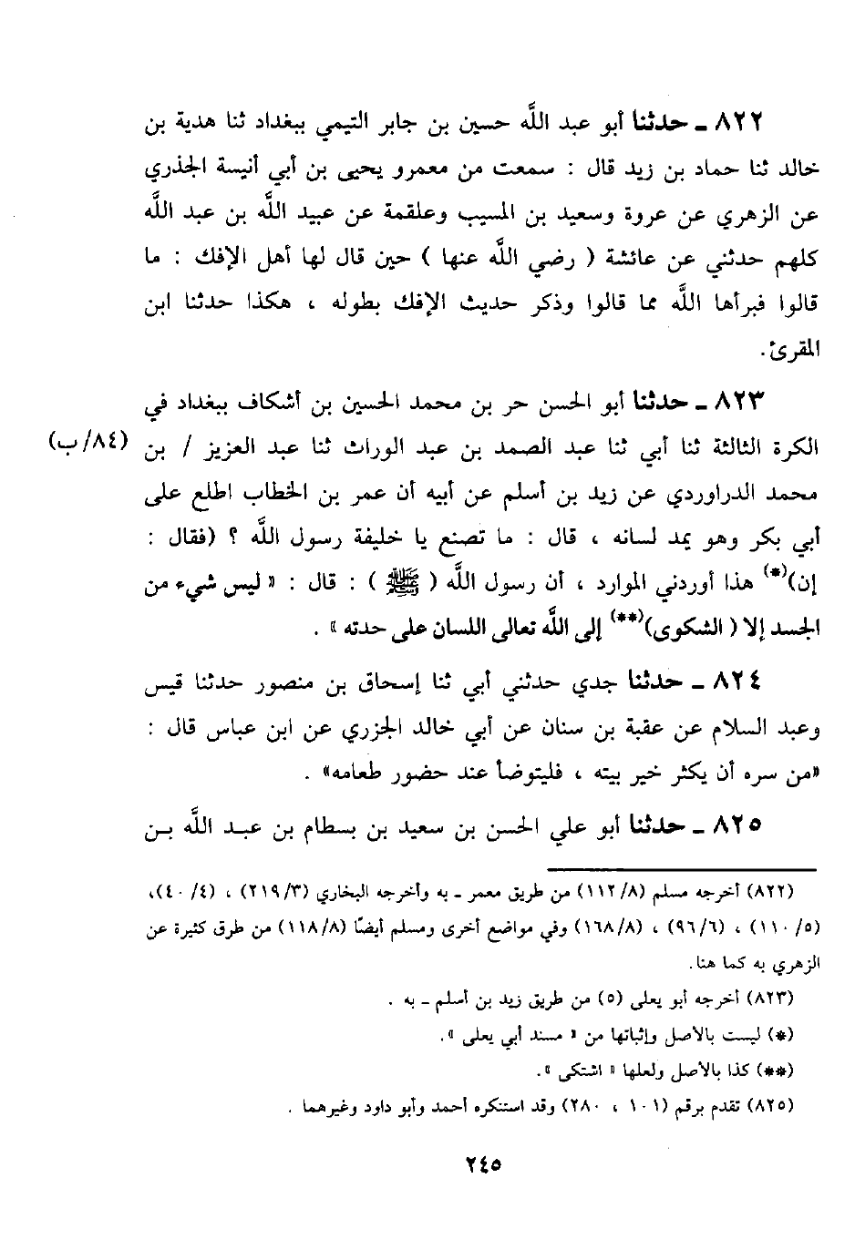 798 - حَدَّثَنَا حُسَيْنٌ، ثنا حَفْصُ بْنُ عَمْرٍو الرِّيَالِيُّ قَالَ: سَمِعْتُ عَبْدَ الرَّحْمَنِ بْنَ مَهْدِيٍّ يَقُولُ: «§مَا كُنْتُ لِأَعْرِضَ أَحَدًا مِنْ أَهْلِ الْأَهْوَاءِ عَلَى السَّيْفِ إِلَّا الْجَهْمِيَّةَ، فَإِنَّهُمْ يَقُولُونَ قَوْلًا مُنْكَرًا»