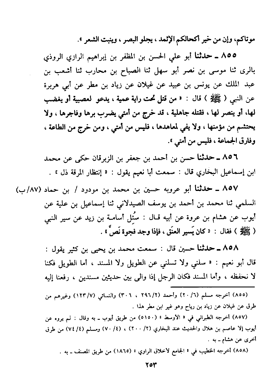 827 - حَدَّثَنَا الْحَسَنُ بْنُ عَبْدِ اللَّهِ بْنِ شَفْطَانَ الرَّقِّيُّ الْبَزَّازُ الرِّبْضِيُّ، ثنا هِلَالُ بْنُ الْعَلَاءِ، ثنا أَبِي، ثنا جَدِّي هِلَالُ بْنُ عُمَرَ عَنْ أَبِيهِ عُمَرَ بْنِ هِلَالٍ عَنْ أَبِي غَالِبٍ، عَنْ أَبِي أُمَامَةَ، عَنِ النَّبِيِّ صَلَّى اللَّهُ عَلَيْهِ وَسَلَّمَ قَالَ: «§يَخْرُجُ نَاسٌ مِنْ أُمَّتِي يَقْرَءُونَ الْقُرْآنَ لَا يَعْدُو تَرَاقِيَهُمْ يَقُولُونَ مِنْ أَحْسَنِ قَوْلِ النَّاسِ إِذَا خَرَجُوا فَاقْتُلُوهُمْ»