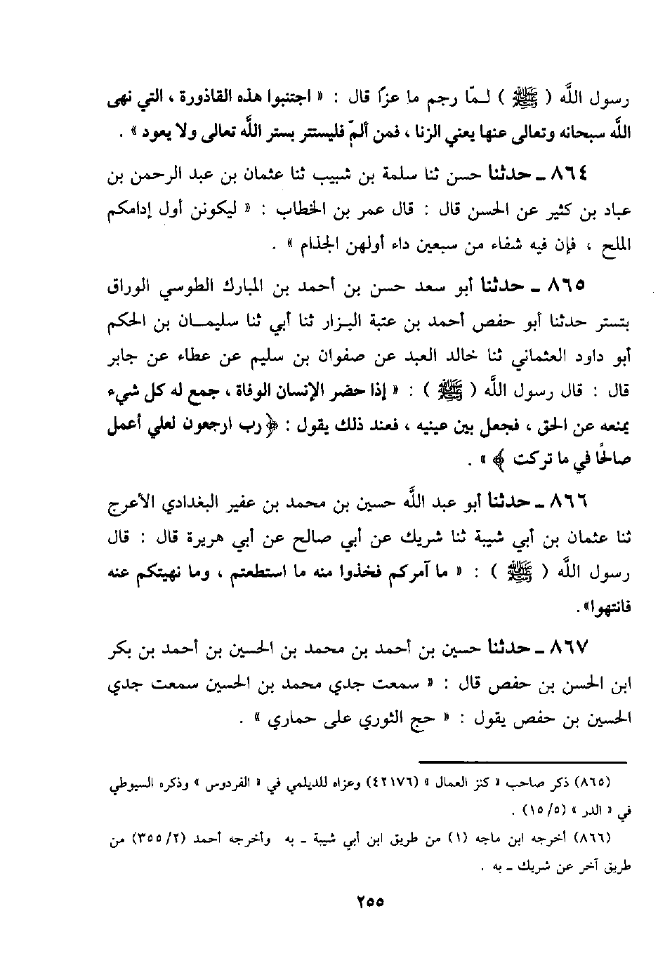 839 - حَدَّثَنَا حُسَيْنُ بْنُ يَزِيدَ بْنِ يَعْقُوبَ بْنِ عَبْدِ اللَّهِ بْنِ أَسَدٍ، ثنا إِبْرَاهِيمُ بْنُ الْحُسَيْنِ دِيزِيلُ ثنا يَحْيَى بْنُ صَالِحٍ الْوُحَاظِيُّ، عَنْ مُحَمَّدِ بْنِ عَبْدِ الْمَلِكِ الْأَنْصَارِيِّ، عَنِ ابْنِ الْمُنْكَدِرِ، عَنْ جَابِرٍ قَالَ: قَالَ رَسُولُ اللَّهِ صَلَّى اللَّهُ عَلَيْهِ وَسَلَّمَ: «§طَلَبُ الْعِلْمِ فَرِيضَةٌ عَلَى كُلِّ مُسْلِمٍ»