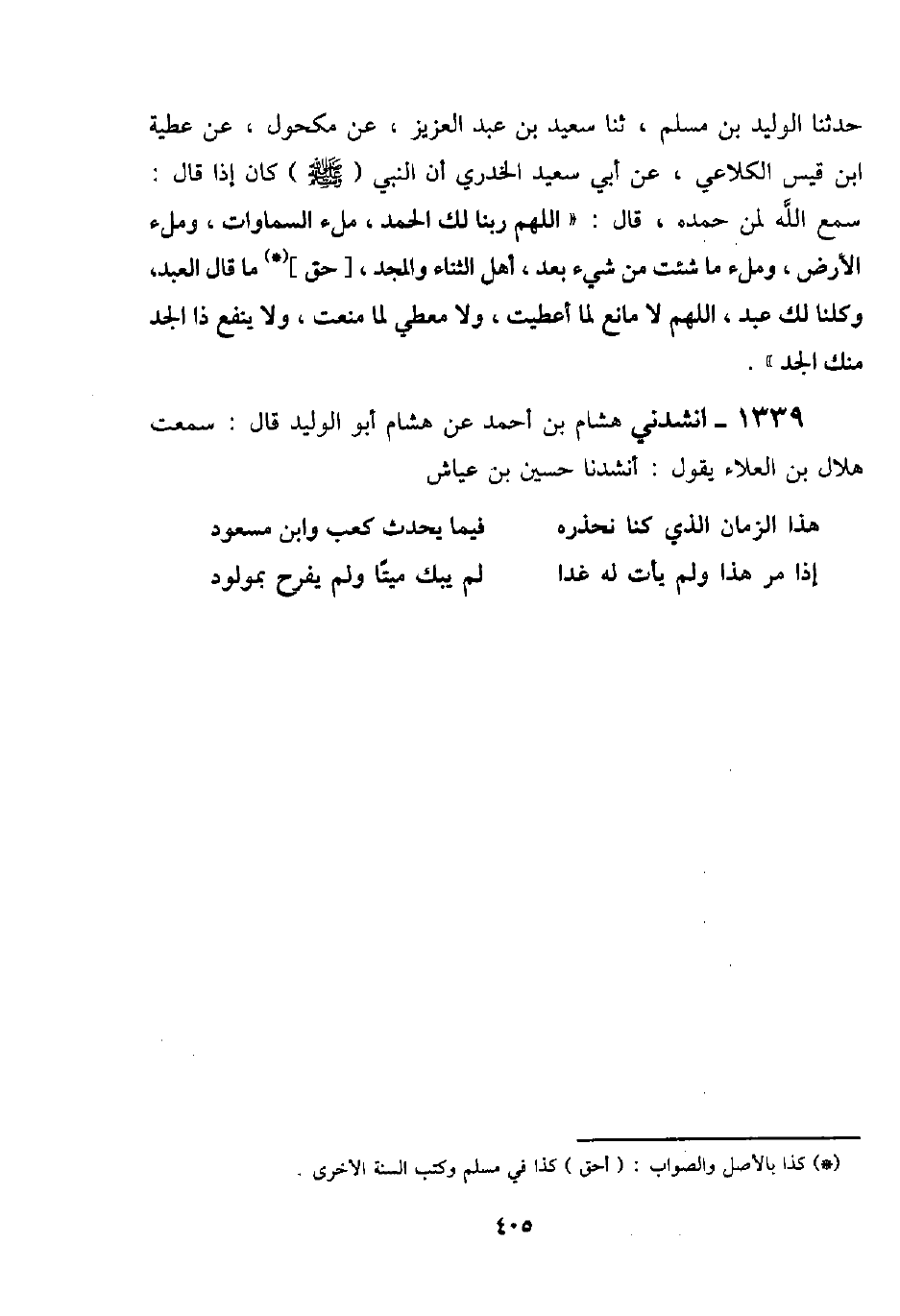 1321 - أَنْشَدَنِي هِشَامُ بْنُ أَحْمَدَ عَنْ هِشَامٍ أَبِي الْوَلِيدِ قَالَ: سَمِعْتُ هِلَالَ بْنَ الْعَلَاءِ يَقُولُ: أَنْشَدَنَا حُسَيْنُ بْنُ عَيَّاشٍ: