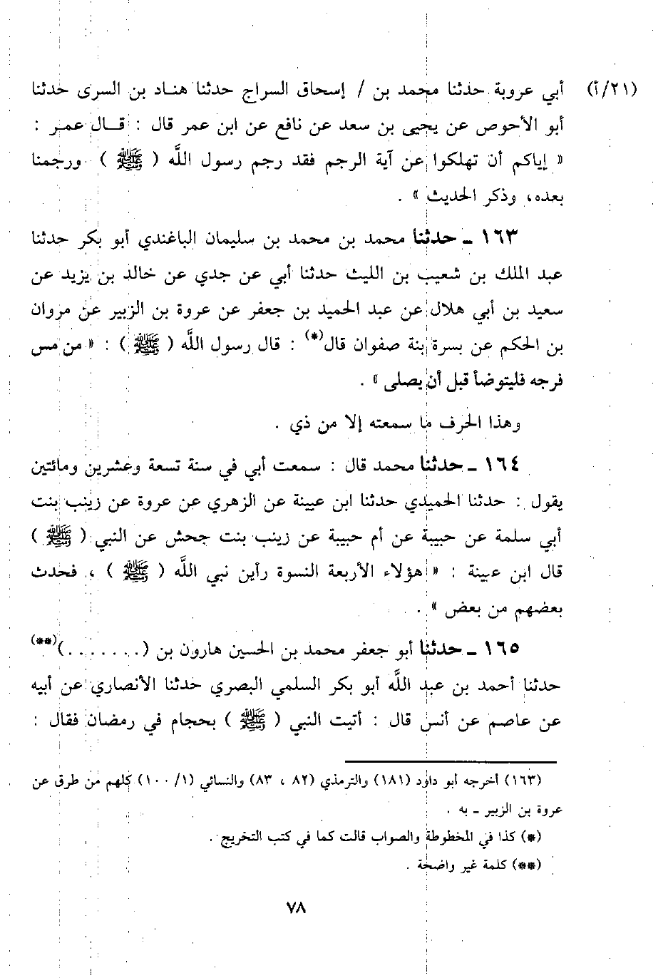 154 - حَدَّثَنَا مُحَمَّدٌ قَالَ: سَمِعْتُ أَبِي فِي سَنَةِ تِسْعَةٍ وَعِشْرِينَ وَمِائَتَيْنِ يَقُولُ: حَدَّثَنَا الْحُمَيْدِيُّ، حَدَّثَنَا ابْنُ عُيَيْنَةَ، عَنِ الزُّهْرِيِّ، عَنْ عُرْوَةَ، عَنْ زَيْنَبَ بِنْتِ أَبِي سَلَمَةَ، عَنْ حَبِيبَةَ، عَنْ أُمِّ حَبِيبَةَ، عَنْ زَيْنَبَ بِنْتِ جَحْشٍ، عَنِ النَّبِيِّ صَلَّى اللَّهُ عَلَيْهِ وَسَلَّمَ. قَالَ ابْنُ عُيَيْنَةَ: «§هَؤُلَاءِ الْأَرْبَعَةُ النِّسْوَةُ رَأَيْنَ نَبِيَّ اللَّهِ صَلَّى اللَّهُ عَلَيْهِ وَسَلَّمَ، فَحَدَّثَ بَعْضُهُمْ مِنْ بَعْضٍ»