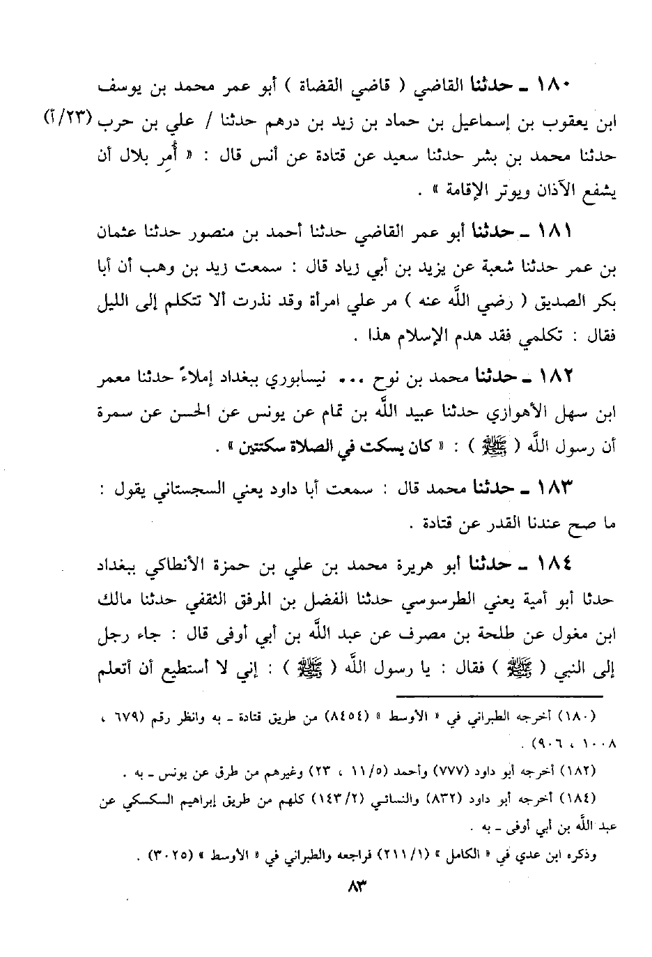 170 - حَدَّثَنَا مُحَمَّدُ بْنُ نُوحٍ الجنديْسَابُورِيٌّ بِبَغْدَادَ إِمْلَاءً حَدَّثَنَا مَعْمَرُ بْنُ سَهْلٍ الْأَهْوَازِيُّ، حَدَّثَنَا عُبَيْدُ اللَّهِ بْنُ تَمَّامٍ، عَنْ يُونُسَ، عَنِ الْحَسَنِ، عَنْ سَمُرَةَ، أَنَّ رَسُولَ اللَّهِ صَلَّى اللَّهُ عَلَيْهِ وَسَلَّمَ: كَانَ §يَسْكُتُ فِي الصَّلَاةِ سَكْتَتَيْنِ