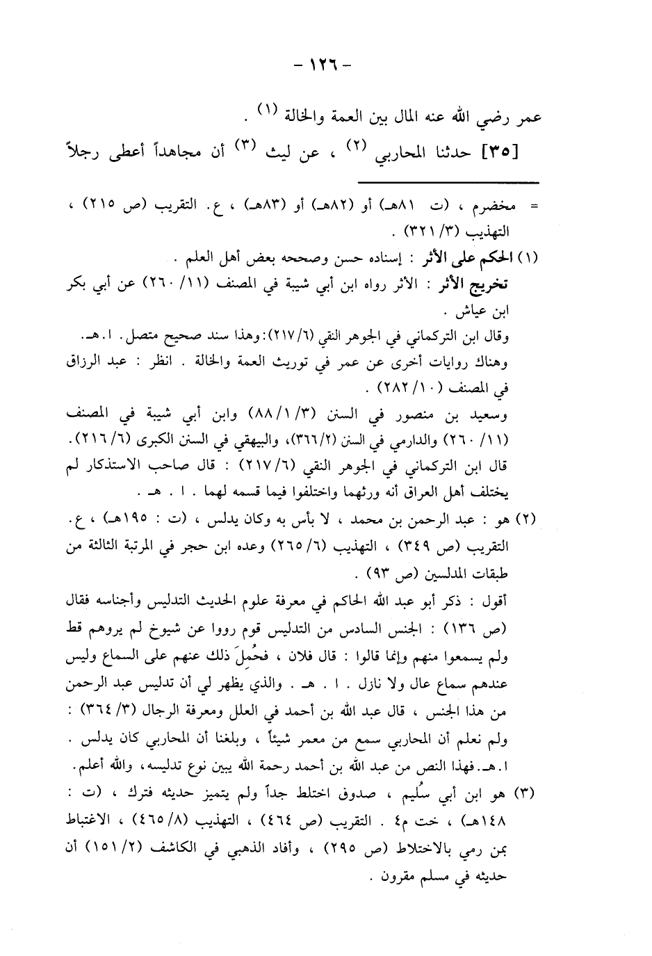 35 - حَدَّثَنَا الْمُحَارِبِيُّ، عَنْ لَيْثٍ، أَنَّ مُجَاهِدًا، «§أَعْطَى رَجُلًا -[127]- مُصْحَفًا يَكْتُبُهُ لَهُ بِخَمْسِمِائَةِ دِرْهَمٍ»